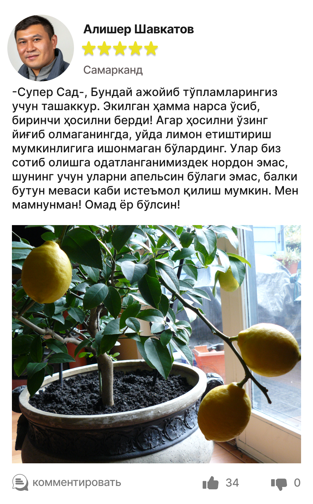 "Супер Сад" кўчатхонасидан уй шароитида етиштириш учун лимонлар: